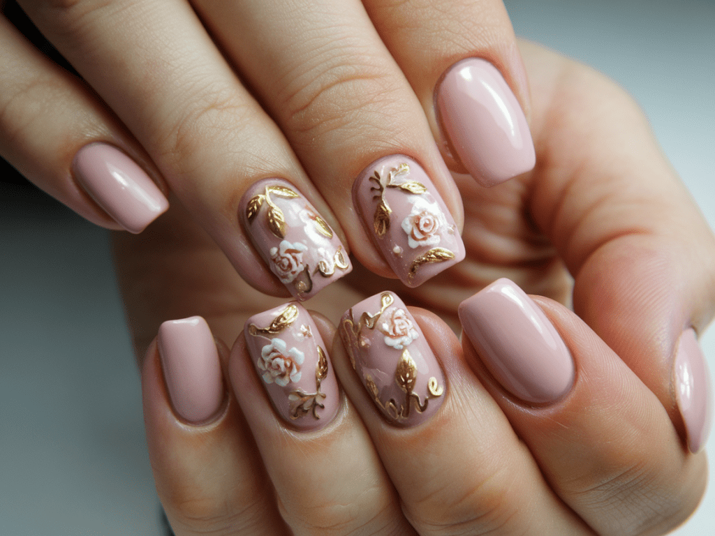 There’s something about pink and gold that feels both elegant and festive — like wrapping paper for your nails.