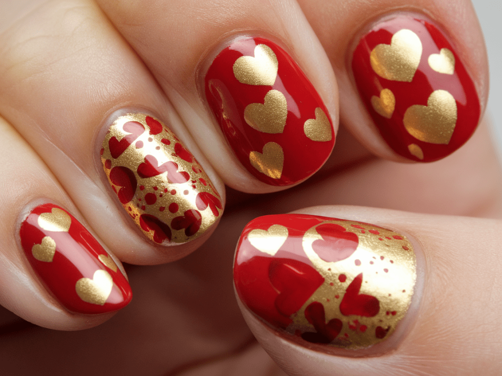 14. Red Hearts on Nude Base – Simple but Stunning 💖
