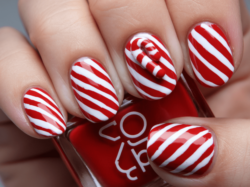 You know what’s underrated? Nails that look like Christmas candy. Seriously, red and white striped gel nails are cheerful, playful, and instantly get you compliments.
