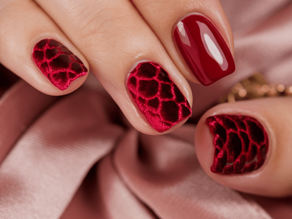 Yes, it’s a dessert and a nail color. Velvet gel nails (aka cat-eye nails) give a soft, shimmery finish that shifts in the light.