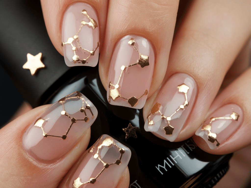 This design mixes subtlety with artistry — think a clear gel base decorated with fine gold foil stars and constellations. It’s the ultimate “effortless luxury” manicure.