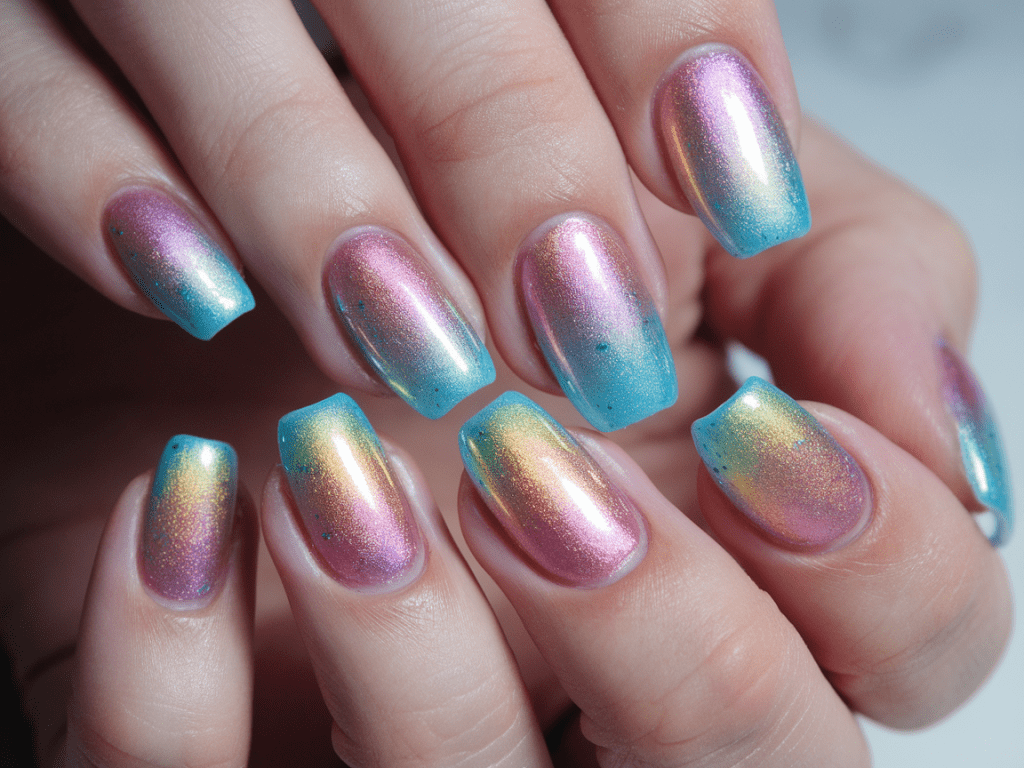 💬 Pro Tip: Use a fine nail art brush to blend shimmer layers — it gives a “floating in space” illusion that’s seriously next level.