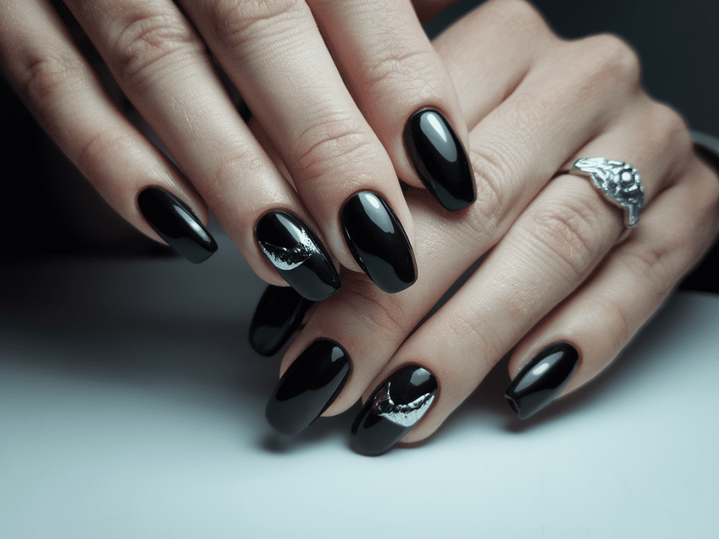 14. Black Gel Nails – Bold, Glossy, and Iconic 🖤