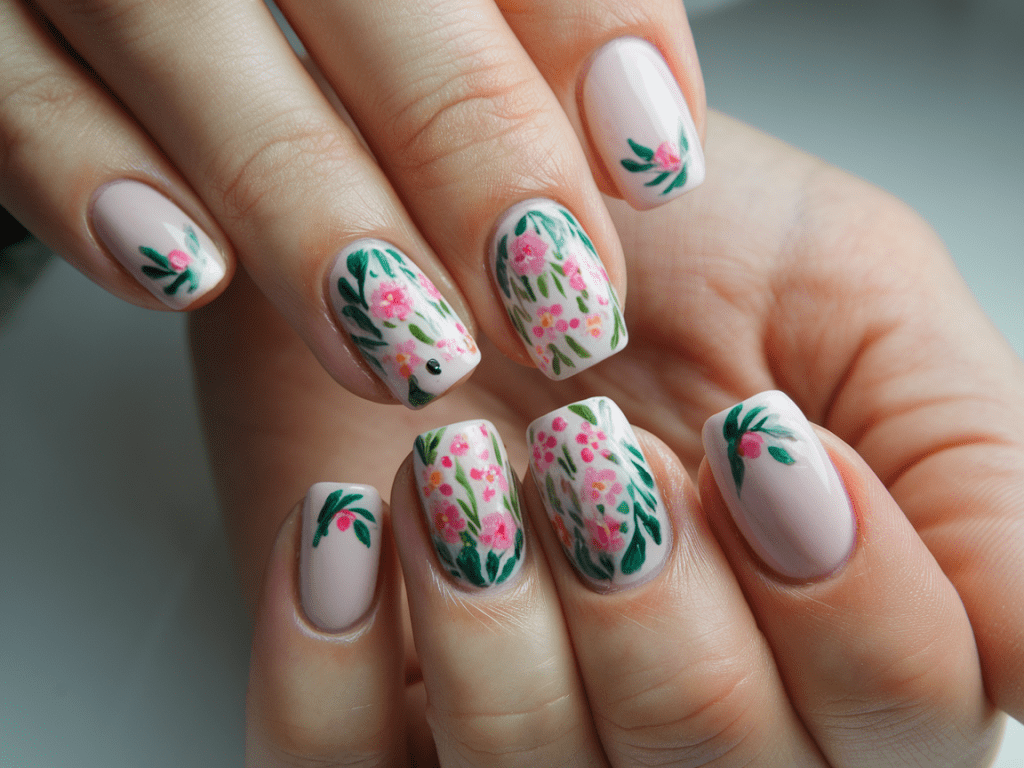 19. Floral Accent Nails 🌺