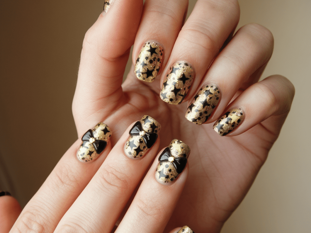 💬 Fun Tip: This look is perfect for anyone who wants a little elegance mixed with a festive twist. It’s basically the Audrey Hepburn of New Year’s nails.