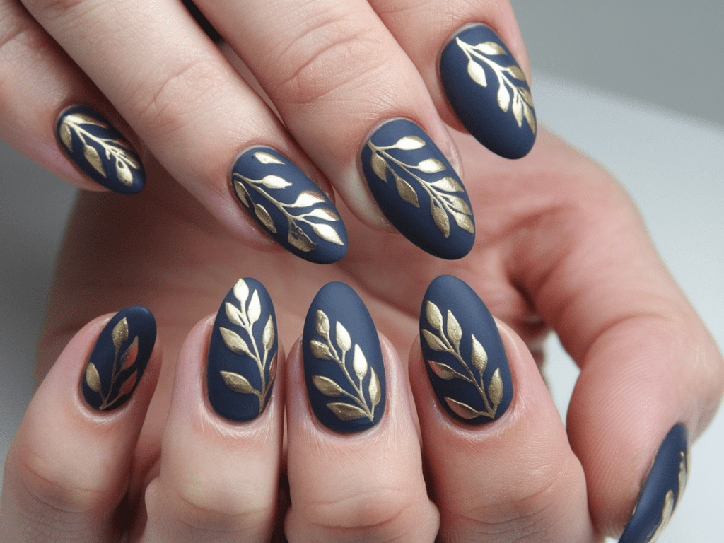 5. Midnight Blue and Gold Leaf