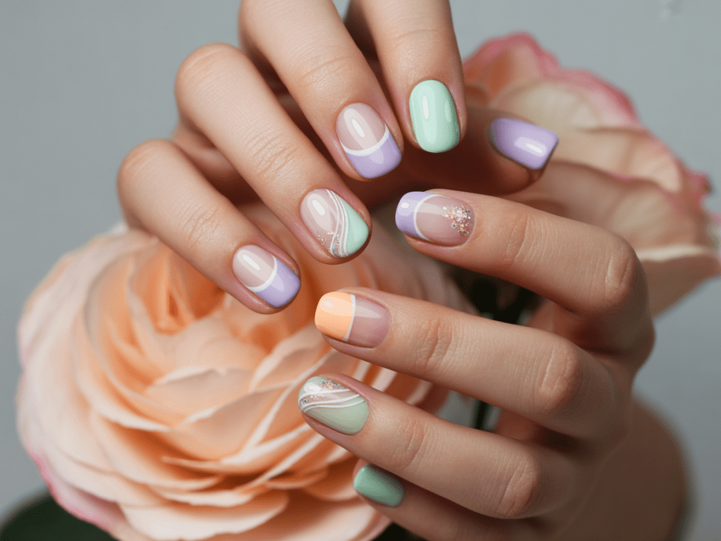- Rainbow Pastel Nails: Each nail a different pastel shade—cute, cheerful, and so Insta-worthy.