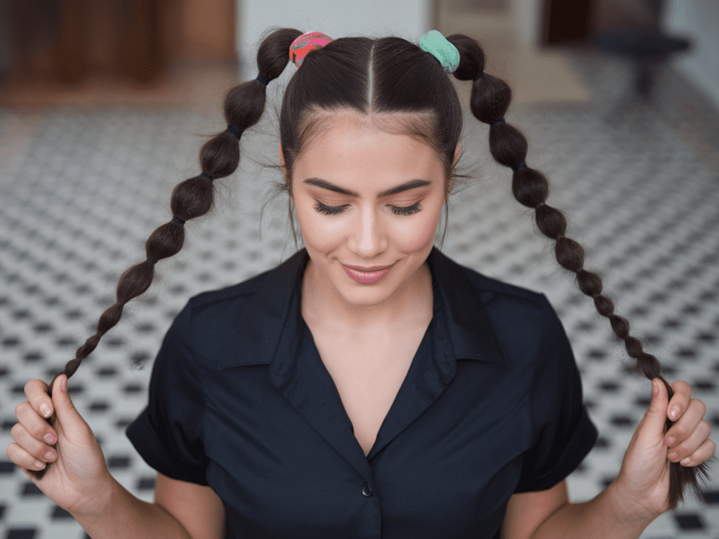 2. Bubble Pigtails — Trendy and Totally TikTok-Approved