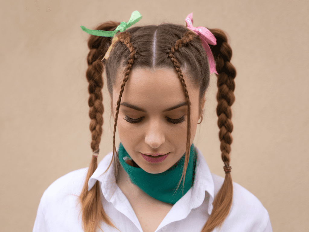 9. Ribbon or Scarf Pigtails — Add Some Personality
